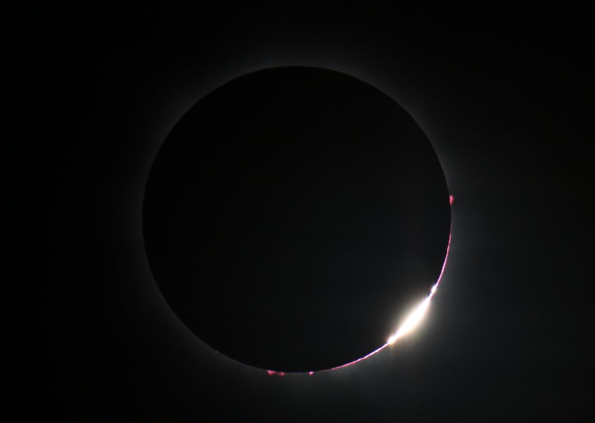 Mit Spannung erwarteten wir den nächsten Morgen das Himmelsspektakel. Bereits vom Mond angeknabbert stieg die Sonne hinter dem dichten Gebüsch auf. Gegen 6.40 verdunkelte sich das Outback gespenstisch. Nachtzustand bei der Totalität und wieder im Banne dieses faszinierenden Anblicks wobei wir uns wieder einmal einig waren, dass bei einer Sonnenfinsternis die Mondscheibe als schwärzestes Schwarz erscheint. Leider wurde mal wieder an den Protuberanzen gespart.